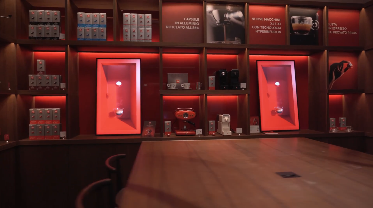Inside illy Caffè stores, 3D content animated immersive video screens that tell the story of the quality, design, and technology behind the new capsules.